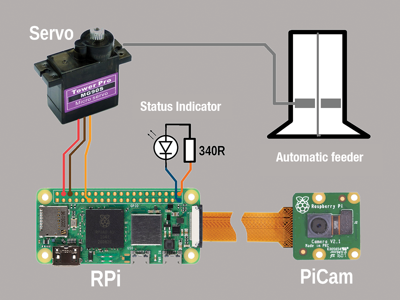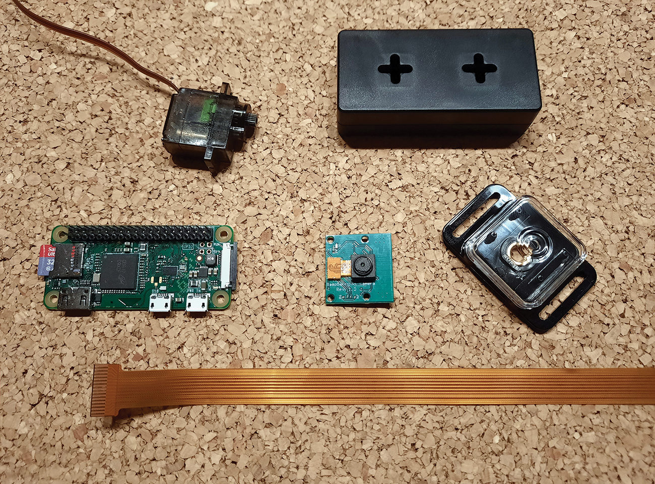 The Zero W comes with on-board tools to accomplish this task, and you can connect a Pi camera to capture an image a short wait after feeding. All you need is a view of a section of the aquarium where the vending machine sits. For protection, the Raspberry Pi and camera are each housed in a small case. The number of other parts in the project is manageable (see the “Parts List” box).